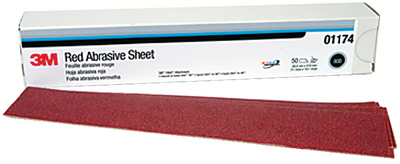 Product Description: Red Abr 2-3/4X16.5 P80D 25/Bx Abrasive sheets used for blocking primer and putty that can be cut to the desired length for use on file shoes and sanding blocks.