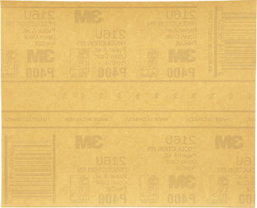 Product Description: 3M 02539 9x11 Resinite Fre-Cut Gold Sheet P400A Utilizes a premium aluminum oxide mineral, and an improved paper backing that results in an improved rate of cut, increased flexibility, increased abrasive life and uniform, consistent finish.