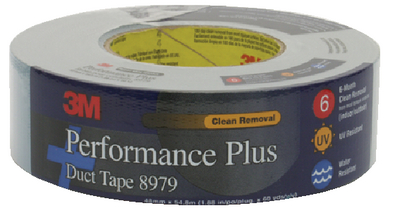 Product Description: #8979 Perf Plus Duct Tape 2 This high performance duct tape has a unique construction of high tensile cloth and an aggressive adhesive. Designed for permanent and temporary applications, indoors and out. Sunlight/UV and water resistance allows for clean removal from most opaque surfaces. Resistance allows for clean removal with little or no adhesive residue for up to 6 months.