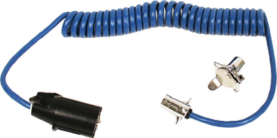 Product Description: Blue Ox BX88254 7 to 4 Wire Adapter Coiled RV Electrical Cable Wire connectors encased in silicone. Reversible plug connectors allow quick hooking and unhooking. Locking connector and expanding cable virtually eliminate accidental disconnecting. Expands from 1' to 7'. Trailer plugs or sockets included.