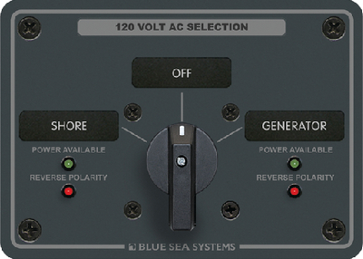 Product Description: Blue Sea Systems 8367 AC Rotary Switch Panel 30 Amp 2 positions + OFF, 2 Pole Provides a safe method of controlling multiple sources of AC power for boats with AC generators, inverters or multiple shore power connections.
