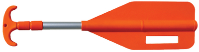 Product Description: Telescoping Paddle Lightweight paddle adjusts easily to variable lengths with a simple twist. A section of the aluminum shaft disappears inside the blade to allow for compact storage under boat seats or in PWC storage compartments. The corrosion-resistant aluminum shaft, high-impact molded blade and boat hook handle, and hassle-free locking device ensure years of service. The bright orange blade is great for signaling in emergencies.