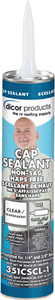 Product Description: Dicor 351CSCL1 Clear Cap Sealant, 10 oz., Clear Excellent for sealing the perimeters of windows, entry doors, compartment doors and joints made of bare or repainted materials. UV and water resistant. Fast drying, easy gunning and paintable.