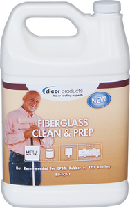 Product Description: Dicor Fiberglass Clean & Prep, White, Gal. Dicor Fiberglass Clean & Prep is designed for use on fiberglass RV roofs prior to coating the roof with Dicor Fiberglass Roof Coating. It is specifically formulated to remove oils, road grit and other contaminants and to enhance the adhesion of the roof coating.