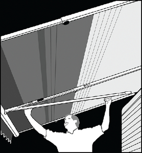 - Storage cradle lifts and supports the rolled-up awning for travel