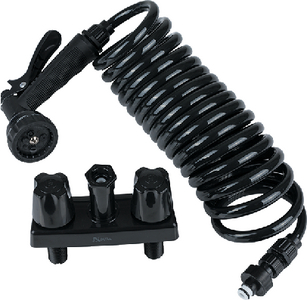 Product Description: Dura Faucet DFSA186BK Exterior Spray Faucet Kit, Black Multi-Spray Nozzle, 15 Coil Hose with Quick Connector and Faucet.
