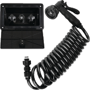 Product Description: Dura Faucet DFSA189BK Exterior Quick Connect Spray Box Kit, Black Spray Box and Faucet with Quick Connector, Multi-Spray Nozzle, 15 Coil Hose.