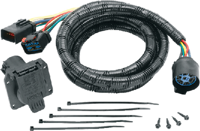Product Description: Tow-Ready 7-Way Fifth Wheel Adapter Harness Car connector assembly 7'. Allows remote wiring in pickup beds or other hard to access areas when towing a fifth wheel or gooseneck trailer, using an OEM USCAR connector. Features durable plastic housing with weather tight seal.