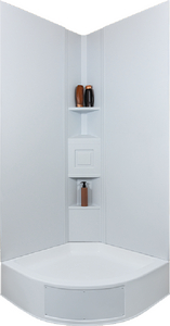 Product Description: Icon 15227 Neo Angle Shower Surround, 45 Degree Corner Modular surround kit intended for installation around a neo angle shower pan. Includes: Corner and 2ea 27" trimmable panels.The corners are designed with adjoining flanges to accept the trimmed panels. Panels include adhesive tape to aid in installation.