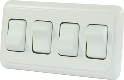 Product Description: JR Products 12331 White Quad RV Rocker Switch Assembly with Bezel Ratings: