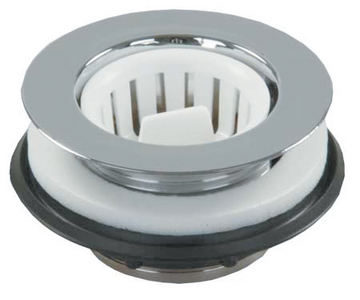 Product Description: JR Products Strainer w/Threaded Basket, Chrome Lightweight, durable plastic is easy to install. Comes complete with lock nut, foam gasket, strainer and basket. Commonly used in bathtub, shower and lavatory sink applications. Fits up to a 2" drain opening. Basket has female threads.