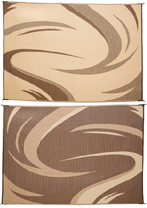 Product Description: Ming's Mark Reversible Mat, Swish, Brown/Tan, 8' x 18' This reversible mat can be used indoors or outdoors; at home on the patio; next to your RV; in the park, garden or at picnics; while camping; or at the beach. It can also be used under pet cages and in exercise pens. Easily clean it with a broom or water sprayed from a hose. The woven construction dries quickly to prevent mold and mildew. The durable polypropylene material is coated with UV protection to resist sun damage and fading. Corner loops can be staked to hold it in place. The mat folds into a compact size for storage and comes with a nylon carry bag. Breathable material won?t damage grass