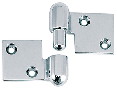 Product Description: Left Hand Pull Apart Hinge Chrome plated bronze. Use two left or two right hand hinges for quick removal of hatches, motor covers, or together as a heavy-duty hinge.