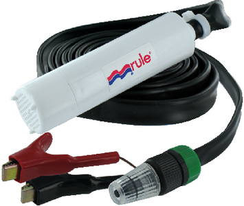 Product Description: Rule IL280PK Slimline In-Line Submersible Pump Kits, 12V, 4 GPM Suitable for diesel, fresh and salt water. Quick diesel transfer with no spillage. Water transfer, deck shower, or deck wash. Pressure: 14 psi. Comes ready to use. Each kit contains: Acetal body pump (6-1/2" length x 1-1/2" dia.), 10' wire with battery clamps, lay flat hose, and spray nozzle.