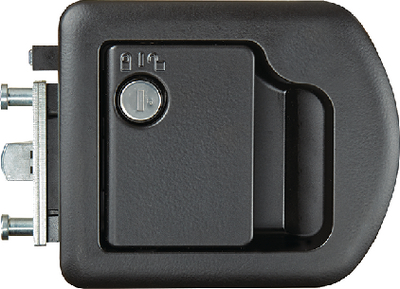 Product Description: RV Designer T505 Black MH RV Entrance Door Handle Hardware Designed for motor home entrance doors, this product provides easy installation with a through sandwich mounting. It features a low cost plunger style latch and is compliant to FMVSS 206.