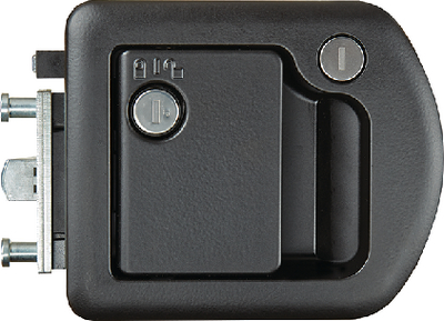 Product Description: RV Designer T507 Black MH RV Entrance Door Handle Hardware with Deadbolt Designed for motor home entrance doors, this product provides easy installation with a through sandwich mounting. It features a low cost plunger style latch and is compliant to FMVSS 206.