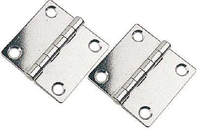 Product Description: Stainless Butt Hinge-2 X 2"c Corrosion resistant stamped 304 stainless steel, consist of two rectangular leaves that attach to the abutting surfaces of a door and door jamb. Installs with four #8 FH fasteners (not included).