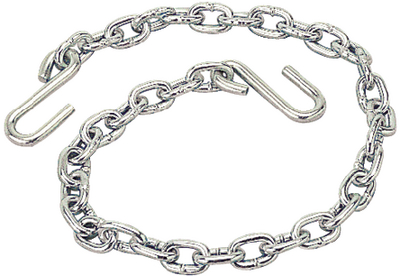 Product Description: Safety Chain Use this Trailer Chain between your trailer and vehicle as an added layer of security to prevent separation if trailer inadvertently comes off trailer ball. Secures with S-hooks on both ends. Zinc plated steel construction.