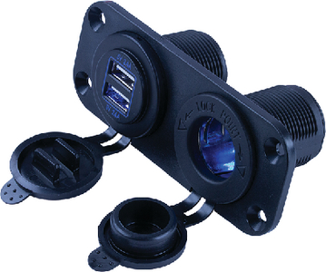 Product Description: SeaDog 426505 Double USB 12V to 24V Input & Power Socket Panel Includes Screws & Connectors Double USB & Power Socket Panel charges two devices simultaneously. Can accommodate both USB connectors, as well as standard power sockets. The total output 4.8A load is split 2.4A per side as needed. Enough power to charge phones, pads, and tablets quickly and efficiently. Protective dust cap extends the life of the charger. Constructed of injection molded nylon. Output DC 5V/4.8A. Input 12-24VDC. Maximum: 12V, 16A. Includes mounting screws and electrical connectors.
