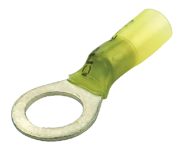Product Description: FulTyme RV Heat Shrink Ring Terminal, 16-14 Ga., 3/8" Stud, Blue, 3/Pk Heat shrink ring terminals have dual wall tubing with an adhesive lining that provides a waterproof seal with durable abrasion resistance and unequaled strain relief. The brazed seam rings will not split open under the most extreme installation and operating conditions.