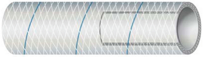 Product Description: Shields Marine Hose Clear Reinforced Series 164 PVC Tubing with Blue Tracer For pressurized water system supply, washdown pump connections, and head intake hose. Clear, heavy duty wall, polyester braid reinforced PVC. Use hose w/blue tracer for cold water applications, use hose w/red tracer for hot or cold water applications. FDA formula vinyl. 250 psi burst pressure.