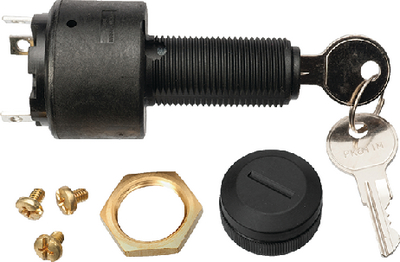 Product Description: Sierra Conventional 3 Position 1 1/8" Polyester 3 Screw Terminal 12V 15 Amp Ignition Starter Switch Polyester Switches: Provide maximum corrosion protection and eliminate potential shorts. Inner seal between cylinder. Does not include push to choke and has a 7/8" Mtg hole. 3 Position(Off - Ignition - Start) lock and contact plate. 30 Amp Solenoid.