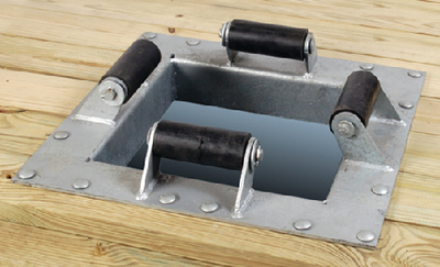 Product Description: Tie Down Engineering Dock Hardware - 14" Internal Pile Holder, Commercial Grade Commercial grade. Heavy duty 1/4" galvanized steel. Bolts to the dock directly. 4 Rollers allow it to move smoothly up and down the piling. Size: 24" x 24" x 7-15/16".