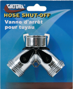 Product Description: Valterra Double Hose Shutoff, Metal Hose Y gives access to hooking up two hoses.