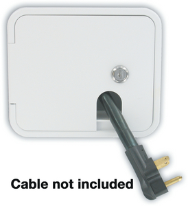 Product Description: Valterra Cable Hatch, Medium Square, White Replacement electrical hatch designed for 50 amp cables. It has a 1.5 deep cavity to hold the cable end with a slide window so you can close the door when hooked up. Installation tape and hardware are included for a consumer friendly installation. Hatch door can lock with either a key or thumb lock, which are both included.
