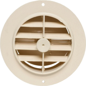 Product Description: Valterra Dampered Heating & A/C Register, Off-White Plastic 2-piece register shows no screw holes and rotates to direct air flow. 4" ID / 5-3/8" OD. Installation tape and hardware included.