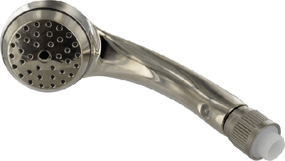 Product Description: Valterra PF276039 Phoenix Airfusion Hand Held Outdoor Replacement Shower Head, Brushed Nickel The WaterSense® compliant airFusion hand showers feature a unique air-infusion design that uses less water to deliver the same invigorating flow that consumers want. Single function hand showers include a trickle shut off. This is only the shower head and does not include hose, bracket, or mounting hardware.